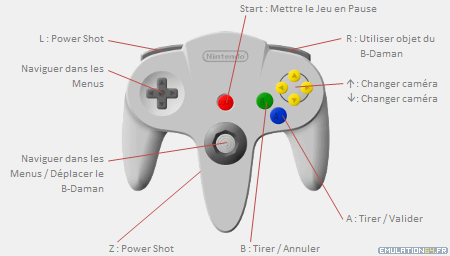 Comment Jouer ![]() Si vous souhaitez obtenir plus d'informations sur les commandes de Super B-Daman - Battle Phoenix 64, vous pouvez consulter le Manuel du Jeu.