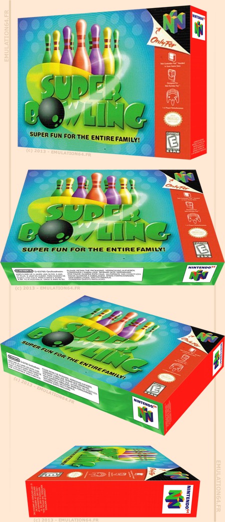 Super Bowling : Informations : Plate-forme : Nintendo 64 (N64) Etat du jeu : Exclusivement import Date de sortie française : n/c 16 janvier 2000 (USA) Genre : Sport Thème : Bowling Multijoueur : 1 à 4 Développeur : Athena Editeur : Tommo Jeu également connu sous le Nom : Super Bowling 64 |