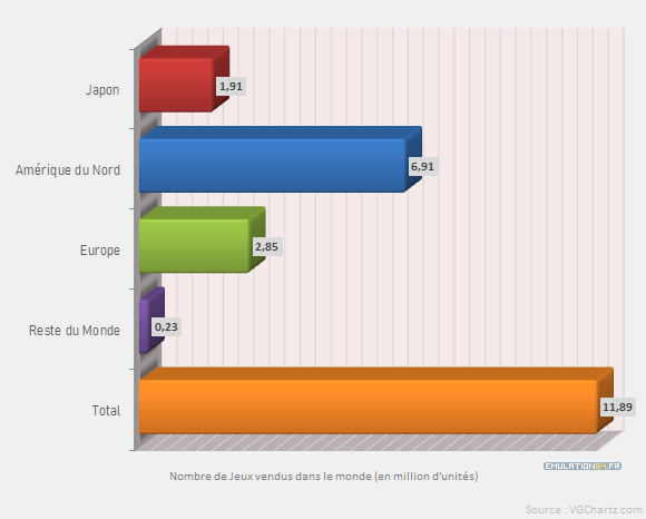 Nombre de Jeux Vendus Nombre de Jeux vendus dans le monde (en million d'unités) : ![]() Super Mario 64 est le Jeu Nintendo 64 le plus vendu. Voir le Dossier : Les Jeux Nintendo 64 les plus vendus. |