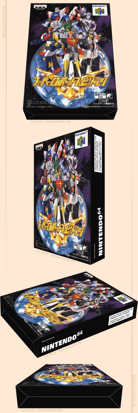 Super Robot Spirits : Informations : Plate-forme : Nintendo 64 (N64) Etat du jeu : Exclusivement import Date de sortie française : n/c 17 juillet 1998 (Japon) Genre : Combat Multijoueur : 1 à 2 Développeur : Banpresto Editeur : Banpresto |