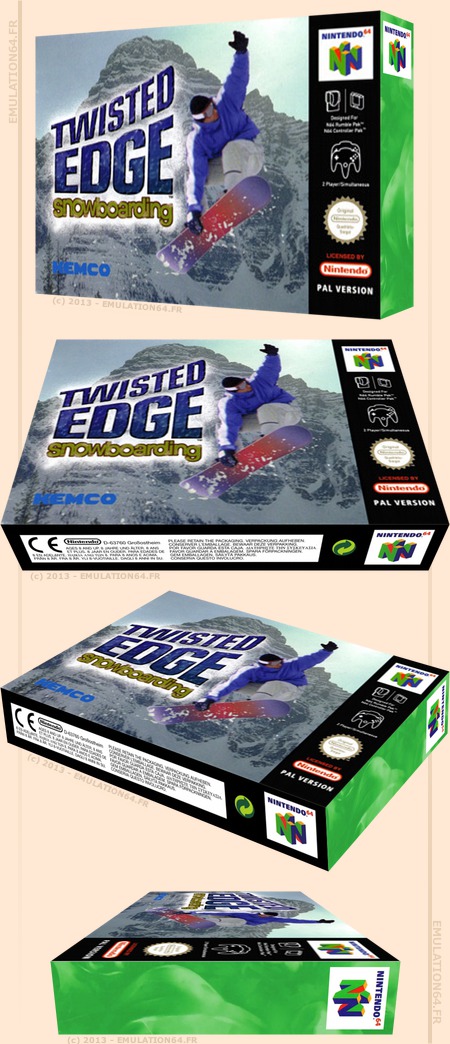 Twisted Edge Extreme Snowboarding : Informations : Plate-forme : Nintendo 64 (N64) Etat du jeu : Disponible Date de sortie française : 1998 1998 (USA) Genre : Sport de Glisse Multijoueur : 1 à 2 Développeur : Boss Game Studio Editeur : Midway Jeu également connu sous le Nom : King Hill 64 - Extreme Snowboarding |