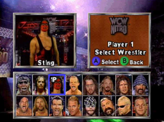 WCW Nitro : Informations : Plate-forme : Nintendo 64 (N64) Etat du jeu : Disponible Date de sortie française : 1999 1999 (USA) Genre : Sport Thème : Catch Multijoueur : 1 à 4 Développeur : Inland Productions Editeur : THQ |