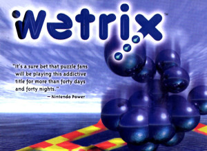 Wetrix : Informations : Plate-forme : Nintendo 64 (N64) Etat du jeu : Disponible Date de sortie française : 1998 1998 (USA) - 1998 (Japon) Genre : Puzzle Game Multijoueur : 1 à 2 Développeur : Zed Two Editeur : Ocean Distributeur : Atari (Infogrames) |