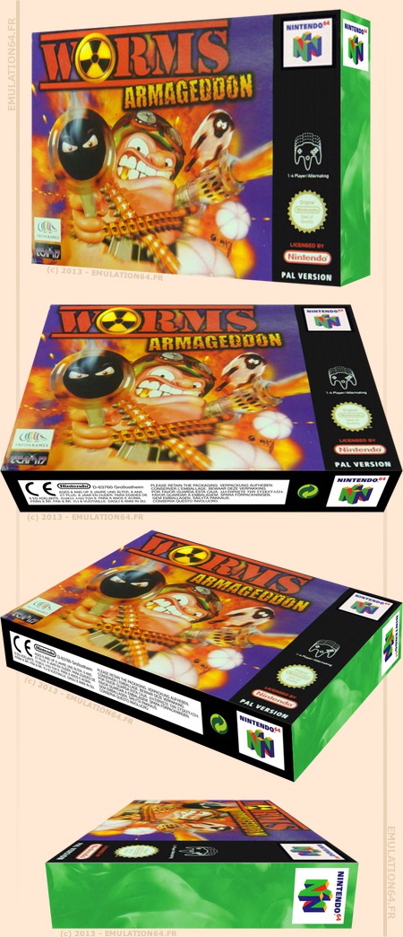 Worms - Armageddon : Informations : Plate-forme : Nintendo 64 (N64) Etat du jeu : Disponible Date de sortie française : n/c 30 mars 2000 (USA) Genre : Stratégie tour par tour Multijoueur : 1 à 4 Développeur : Atari (Infogrames) Editeur : Atari (Infogrames) |