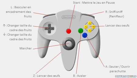 Comment Jouer ![]() Si vous souhaitez obtenir plus d'informations sur les commandes de Yoshis Story, vous pouvez consulter le Manuel du Jeu.