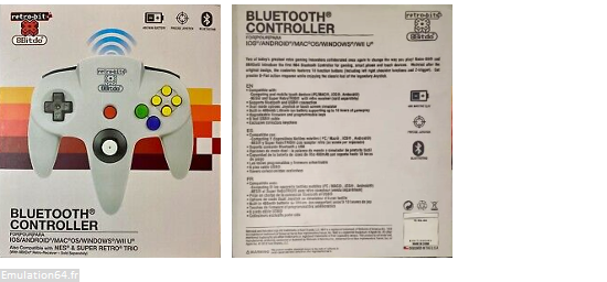 Table des Matières : Consignes de Sécurité Contenu de l'Emballage Bouton et Fonctions de la Manette Jumelage de Votre Manette Bluetooth RB8-64 Mise à Jour du MicroLogiciel Options du Mode Double Charger votre Manette Dépannage (Manuel en Français - 9 pages) Qu'est ce que le Retro-Bit - RB8-64 Bluetooth Controller ? Le "RB8-64 Bluetooth Controller" est une Manette Bluetooth de type Nintendo 64 compatible PC, Andoid, Apple, Wii, PS3 et récepteurs 8Bitdo. Aperçu du Retro-Bit - RB8-64 Bluetooth Controller : |