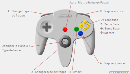 Bottom of the 9th : Informations : Plate-forme : Nintendo 64 (N64) Etat du jeu : Exclusivement import Date de sortie française : n/c 14 avril 1999 (USA) Genre : Sport Thème : Baseball Multijoueur : 1 à 2 Développeur : KCEO Editeur : Konami |