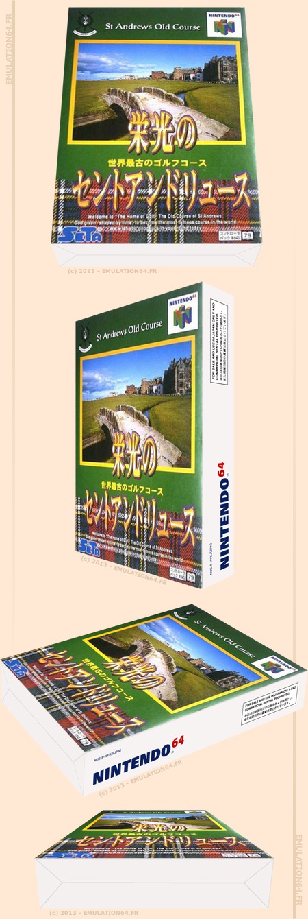 Eikou no Saint Andrews : Informations : Plate-forme : Nintendo 64 (N64) Etat du jeu : Exclusivement Import Date de sortie française : n/c 29 novembre 1996 (Japon) Genre : Sport Thème : Golf Multijoueur : 1 à 4 Développeur : Seta Corporation Editeur : Seta Corporation |