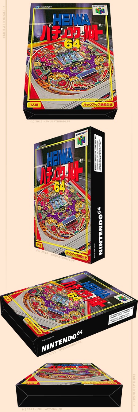 Heiwa Pachinko World 64 : Informations : Plate-forme : Nintendo 64 (N64) Etat du jeu : Exclusivement Import Date de sortie française : n/c 28 novembre 1997 (Japon) Genre : Jeu de Pachinko Jouable uniquement en solo Développeur : Heiwa Editeur : Amtex |